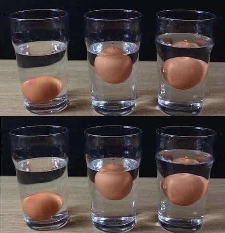 - Rotten egg: floats (gas buildup inside makes it buoyant)