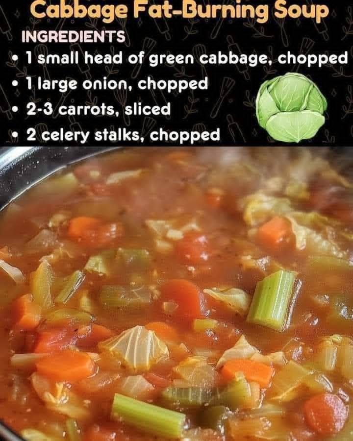 Here’s the classic Cabbage Fat-Burning Soup 🥬🥣 — light, filling, and packed with vegetables. It’s popular for short detox-style resets or when you want something low-calorie and comforting.