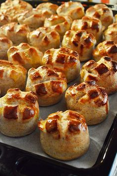 Ah, Hot Cross Buns 🍞✨—sweet, spiced buns traditionally eaten at Easter, marked with the iconic cross on top. Soft, slightly sweet, and fragrant with cinnamon, nutmeg, and often dotted with currants or raisins.