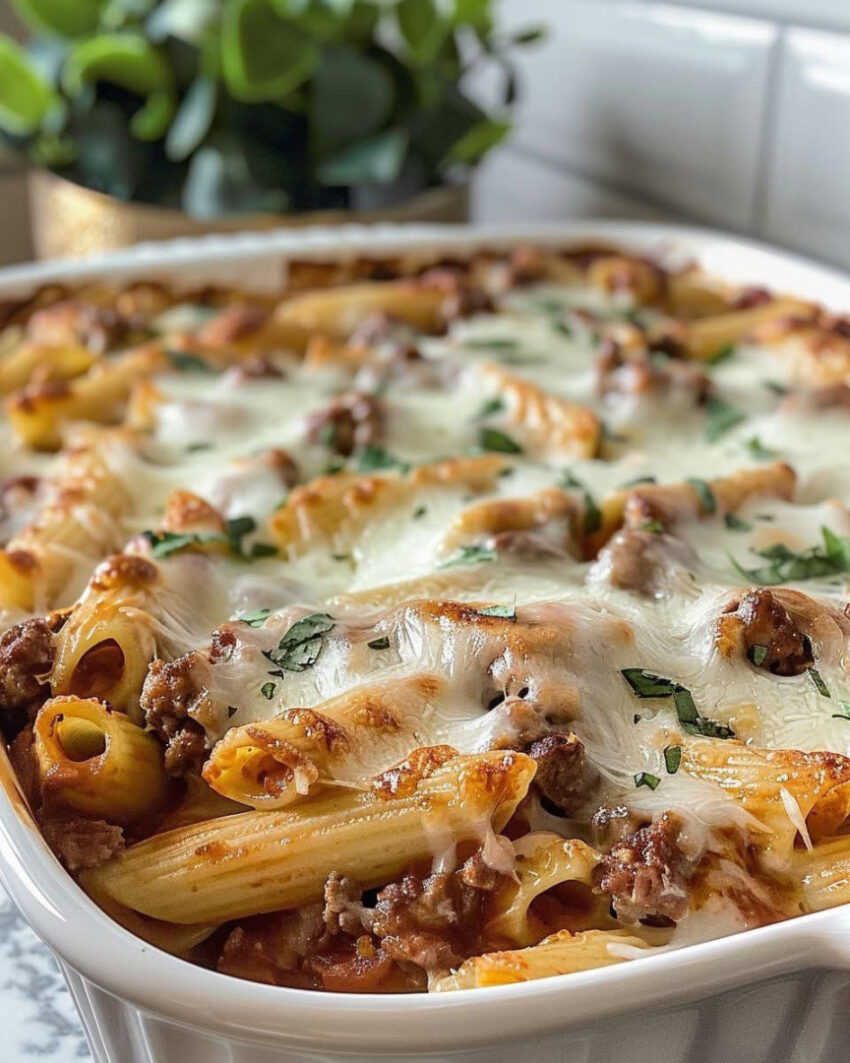 Mostaccioli is warm, cheesy, and perfect for family dinners or leftovers 😋