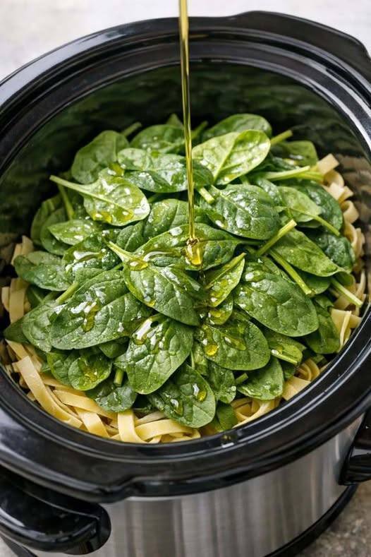 Here’s a super simple slow cooker recipe for spinach and pasta with just 4 ingredients—perfect for a quick, comforting meal: