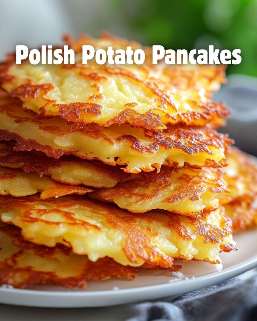 Polish potato pancakes, known as placki ziemniaczane, are a traditional Polish dish made from grated potatoes, onions, eggs, and flour, then fried until crispy and golden. They are savory, slightly crunchy on the outside, and soft inside.