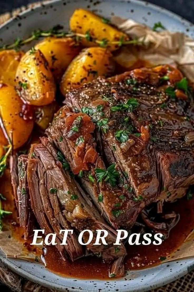 Here’s a classic Pot Roast with Potatoes and Carrots—hearty, comforting, and perfect for a family dinner. 🥩🥕🥔 Slow-cooked until the meat is tender and the vegetables are full of flavor.