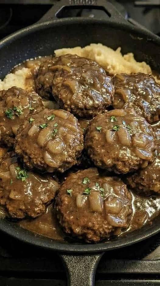 Ahhh yes 😌 Salisbury steak—classic comfort food: juicy beef patties smothered in rich mushroom gravy. Let’s make it the way it deserves.