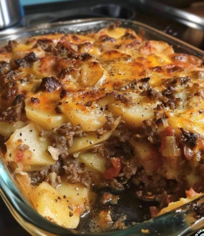 A hearty dish of savory meat and vegetables topped with creamy mashed potatoes. Traditionally made with lamb, but ground beef works too (then it’s technically called cottage pie).