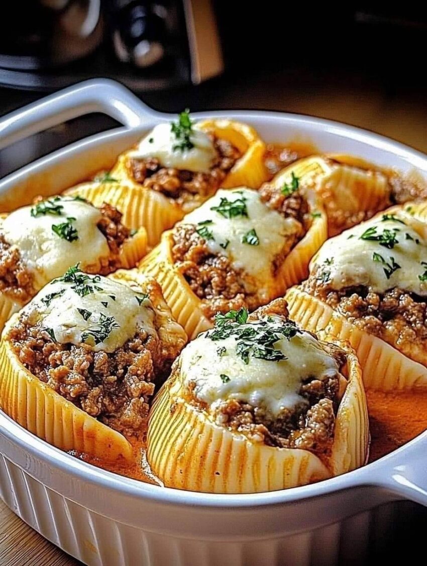 • 🧀 Three-cheese and meat stuffed shells (extra cheesy indulgence)