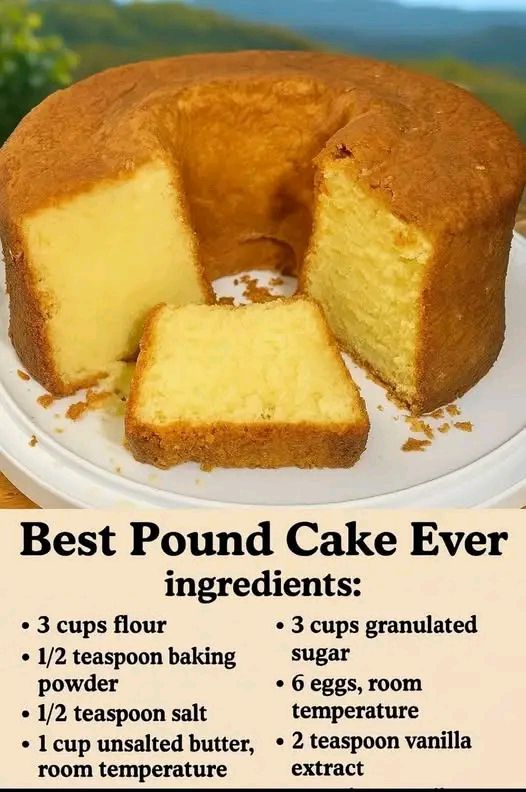 Here’s a classic Pound Cake recipe—rich, buttery, and perfect for dessert or tea 🍰