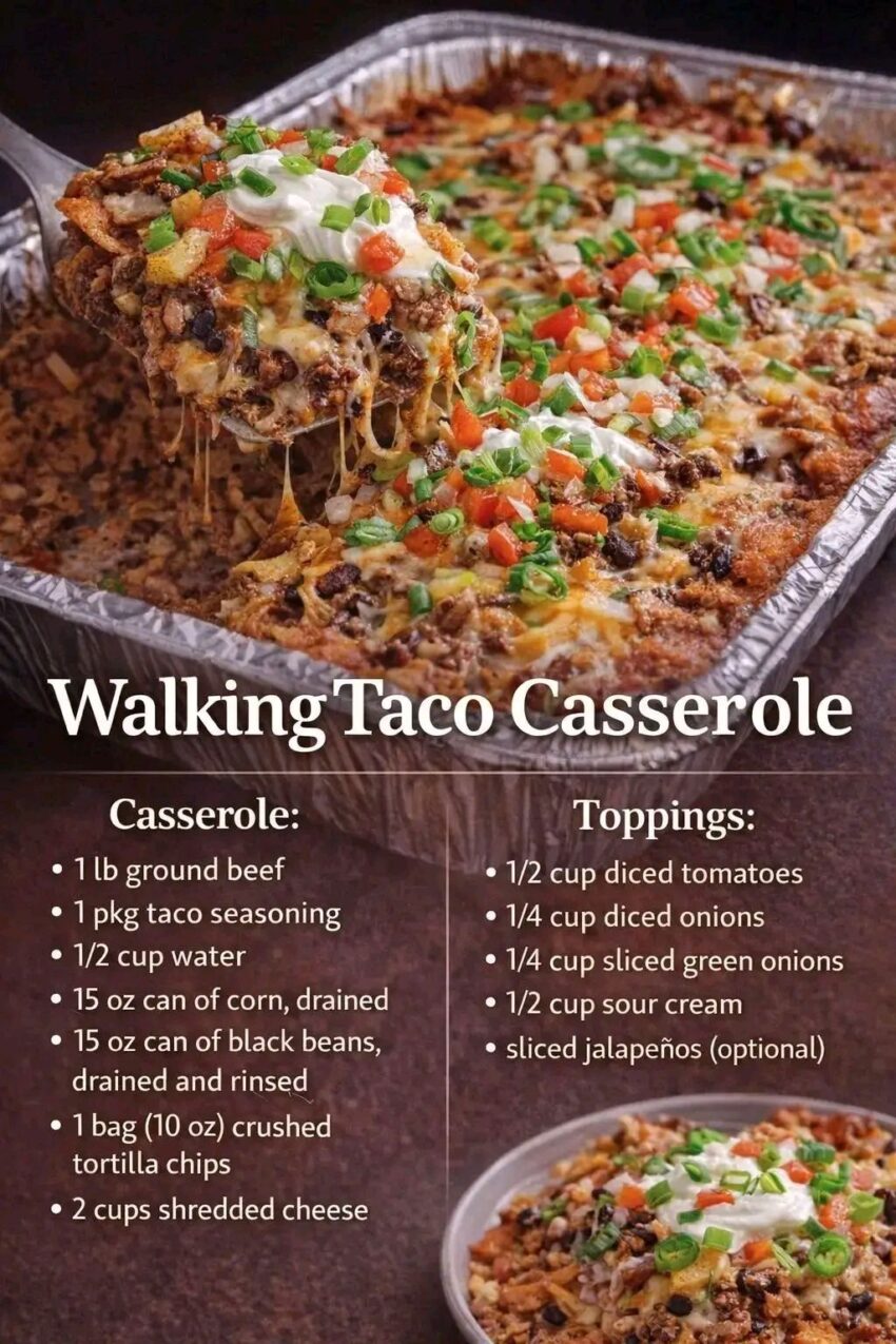 Here’s a fun and hearty Walking Taco Casserole 🌮🧀 — all the flavors of a walking taco layered in a baked dish for easy serving.